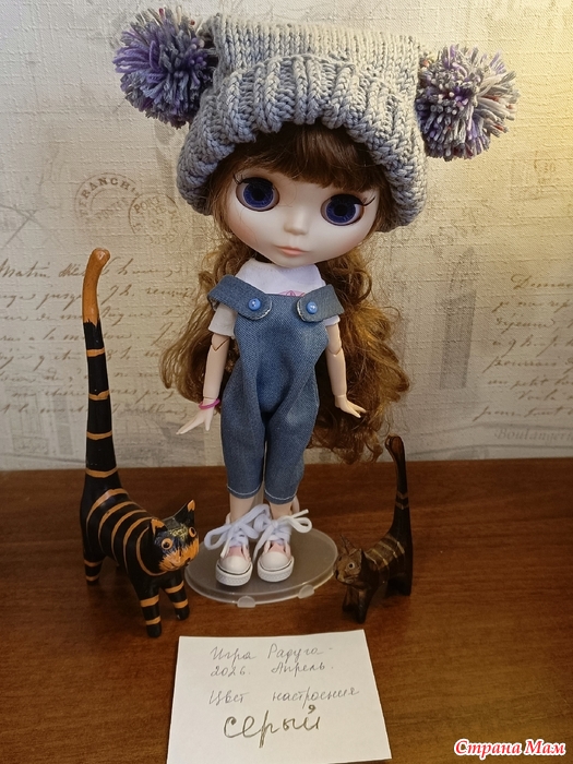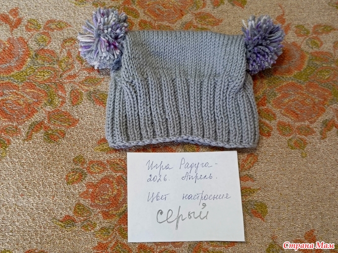 Радуга - 2026. Апрель - серый. Шапочка для куклы