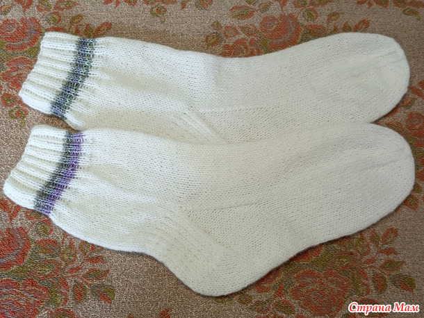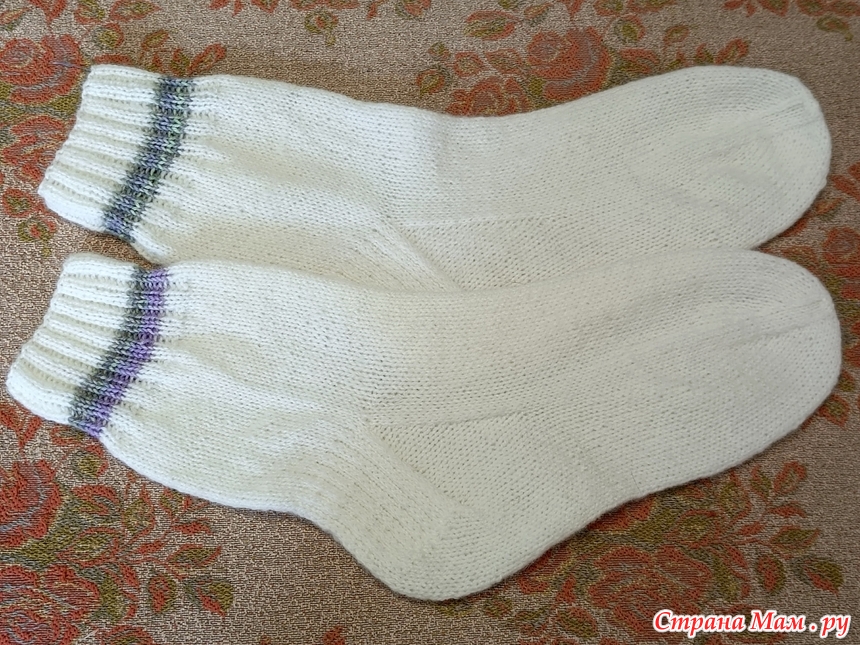 Здравствуйте! Представляю носки. Материалы: спицы носочные № 2,25, пряжа Пехорка ангорская тёплая, цвет С1 - белый и стоковая пряжа. Начало и продолжение процесса: Итого: Подарены в таком виде с брелоками: Спасибо за просмотр! Читать полностью