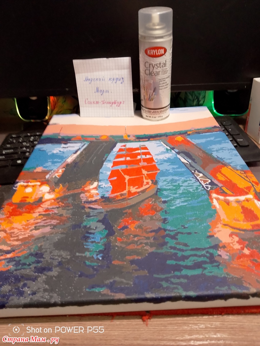 ту картину 2 раза покрывала лаком. Цвета после покрытия лака стали более яркие но запах очень резкий пришлось проветривать квартиру.