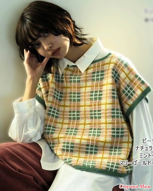 Клетчатый узор, созданный с помощью вязания крючком, выглядит очень свежо! Поскольку его можно вязать по прямой линии, попробуйте вязать медленно и аккуратно, сосредоточившись на узоре.