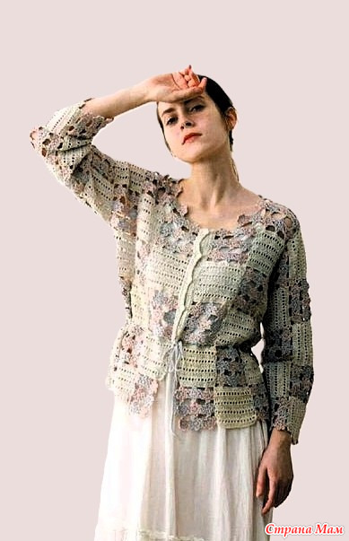 Кардиган печворк с цветочными мотивами. Крючок.