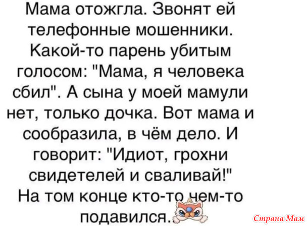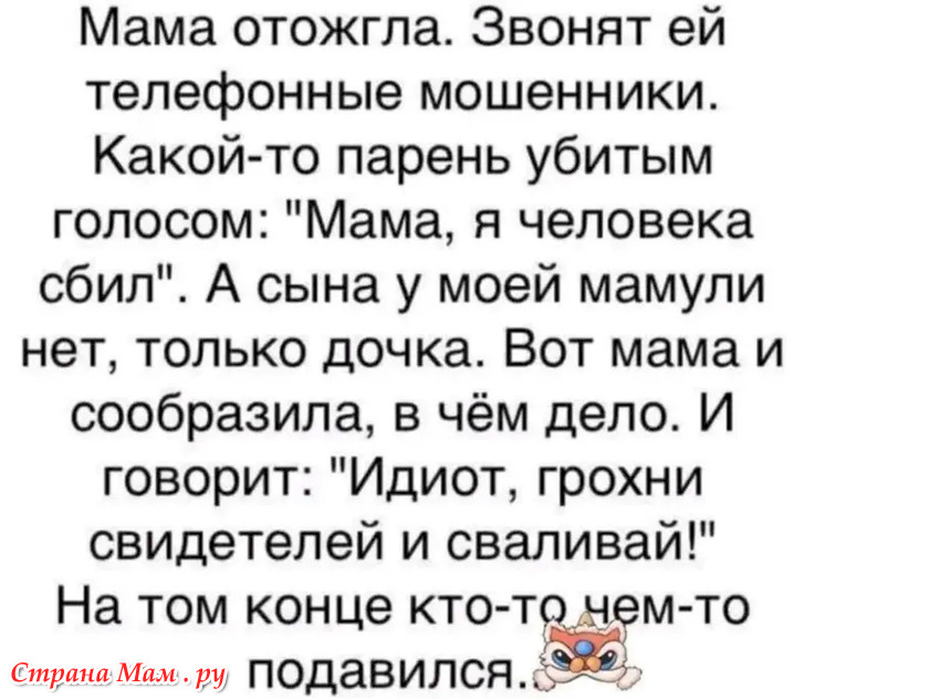 Какая-то женщина звонила моей матери и говорила сквозь слезьi: "Мама, я ногу сломала. Врач хочет деньги."