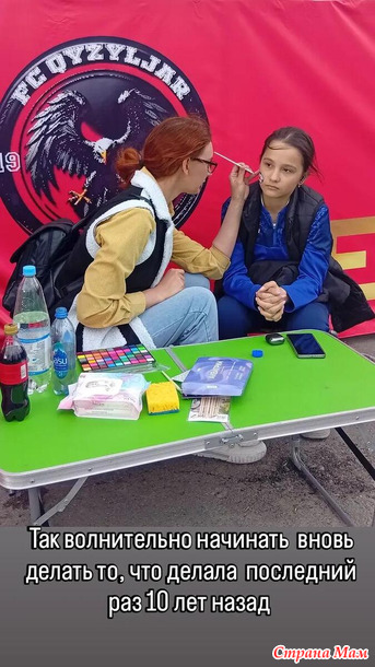 Неожиданно для себя на стадионе встретила свою подругу Юлю. Это онанапомнила мне , что последний раз я рисовала аквагрим 10 лет назад.