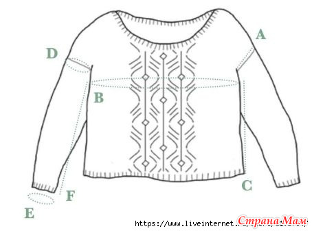 (C) Длина пуловера от проймы: 37 (37, 37, 38, 38, 40, 40, 40, 40) см