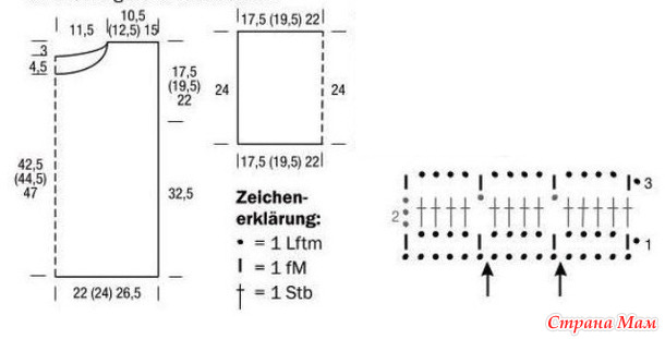 Рукава: Набрать 101 (111) 126 воздушных петель розовой нитью и провязать 24 см 34 ряда узором крючком в последовательности цветов B. Завершить работу.