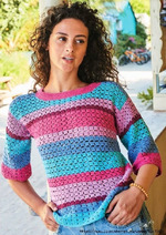 Летний джемпер в разноцветную полоску от Lana Grossa. Крючок.