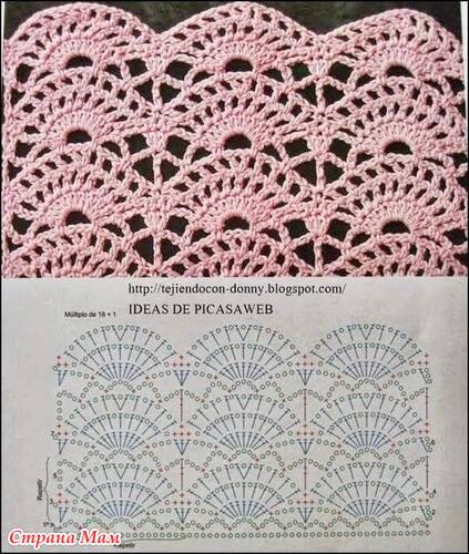 Воспроизвести можно, взяв за основу узор веерочки. Чтобы второй ряд столбико был более плотный, видела недавно в пинтерест такой способ : вяжется столбиу с несколькими накидами, потом по нему набираются петли и провязываются по принципу тунисского вязания