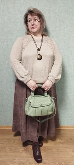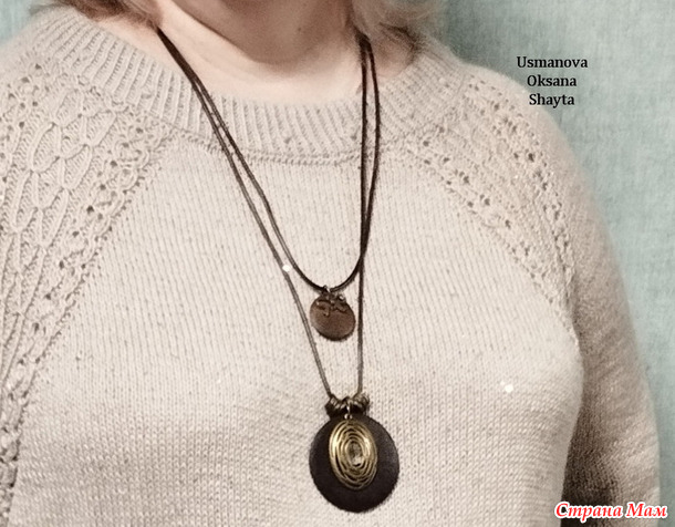 Связан сверху вниз. Вывязана скрещенная резинка по горловине, по рукавам и низу изделия.Горловина и рукава двойные.Реглан представлен широкой панелью из 28 петель. Взяла несколько узоров из книги Хитоми Шида и объединила, результат- очень нравится!После подрезов добрала петли,чтобы из двух панелей было три по бокам.