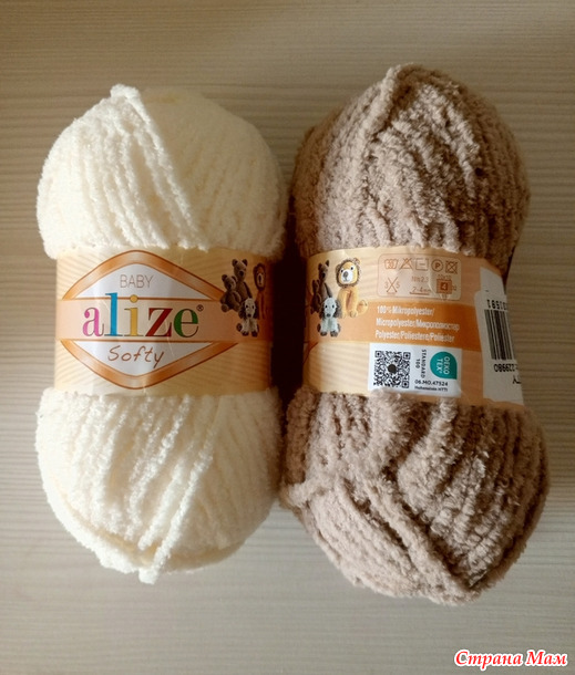 Нитки Alize baby Softy, 50 гр - 115 м, ушло по 6 мотков каждого цвета.