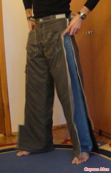 но здесь, думаю, можно сделать простые брюки на синтепоне, вместо бокового шва просто замок вставить))