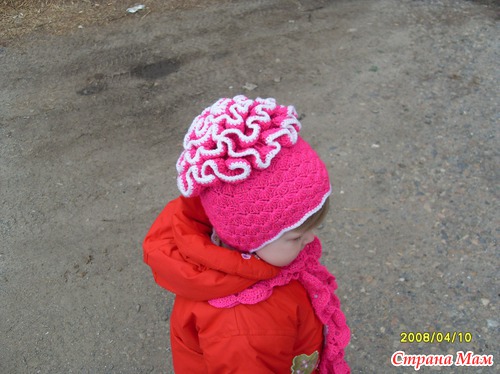 Связалась вот такая шапочка-"георгинчик" и шарфик от Натальи Пелых