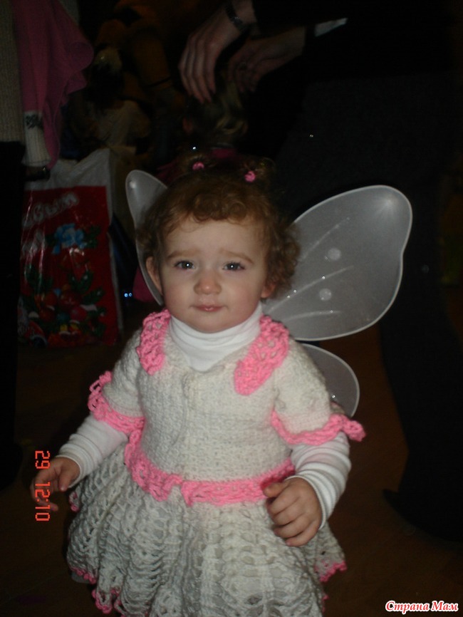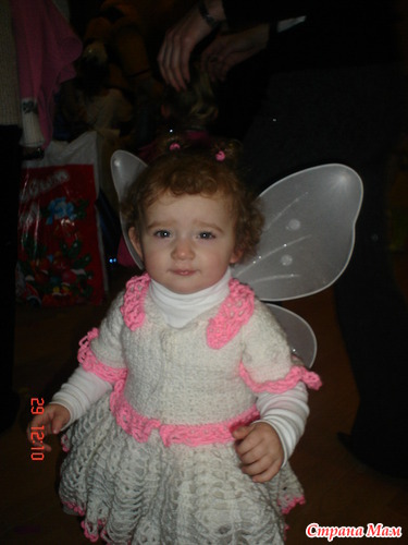 Это платье я долго вязала, и дочь потихому начала из него вырастать. Пряжа королевский махер. Платье прекрасно подошло на Новогодний праздник, потому что было весьма не жарко.
