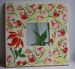 Тут кроме декупажа использована еще и объемная текстурная пста. Ею выложен большой цветочек. Рскрасила его акварелью.