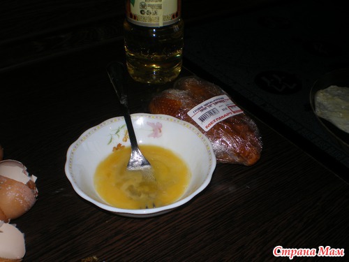 Берем яйцо, разбиваем его в тарелочке солим и немного взбиваем вилочкой. Обжариваем на сковородка с двух сторон.