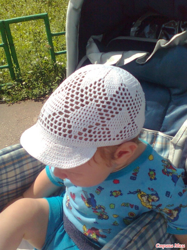 Где то на просторах Интернета нашла вот такую кепочку. Решила связать для сынули. Нитки оказались тонковаты додумала рисунок сама.