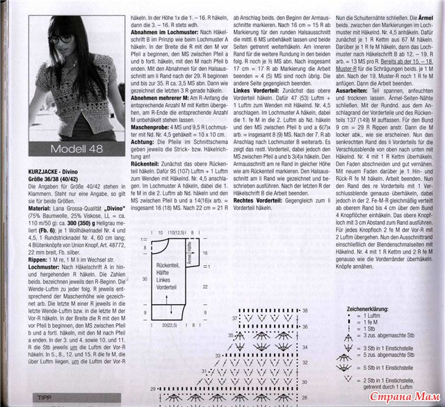 Вот на такую симпатичную кофточку наткнулась на просторах сети, очень мне понравилась и спешу поделиться с Вами!! Сразу захотелось ее связать, но описание, к сожалению, не по-русски. Если у кого-нибудь есть русский перевод, буду признательна. В общем все понятно, но задумалась про резинку и рукава.