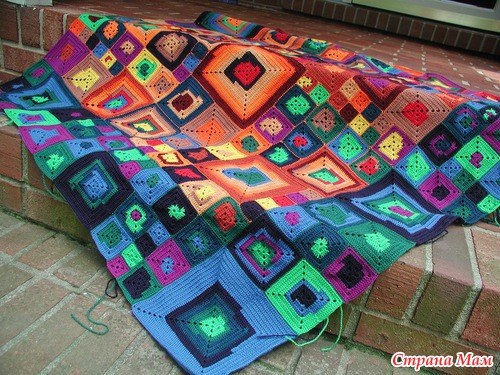 надо стараться квадраты до одного размера вязать.... не одинаковое кол-во рядов, а чтоб по сантиметрам сходилось