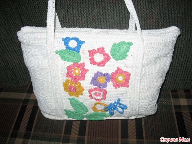 Донышко вязалось отдельно столбиками без накида, все остальное столбики с накидом. Ручки связаны отдельно и потом пришить (я прямо привязала к сумке - чтобы практичнее)