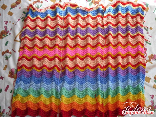 Для оборки по кругу связала 22 отдельные полосы по 74 петли и 11 раппортов узора в длину и потом сшила.