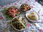 2 помидора, 2 огурчика, брынза кубиками, болгарский перчик по желанию, лук (я люблю белый или красный), маслины оливковое масло, соль.