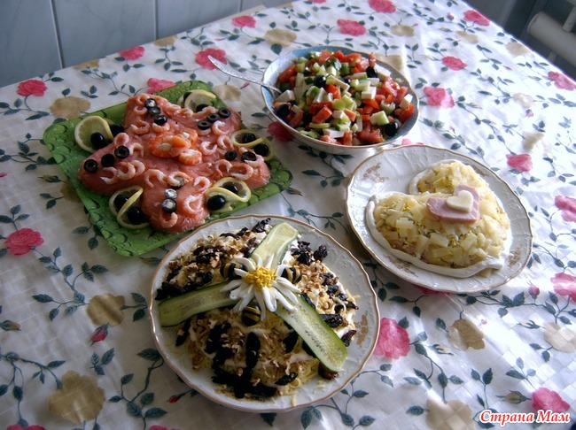 Украсить огурцом (режем вдоль тонкие пластинки и выкладываем как ленту на торт ) можно сделать пчелок из маслин и оливок режете без косточек маслины и оливки и собираете пчелку