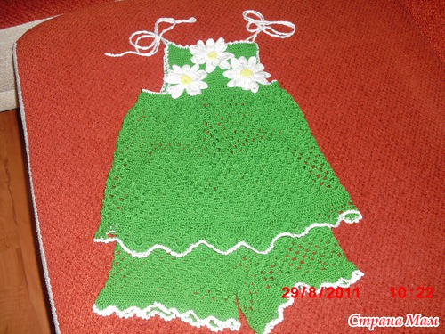 Очень простой рисунок. Нитки "ромашка" Костюмчик летний, но можно и осенью носить.