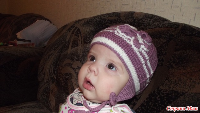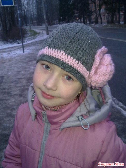 Еще в подарок же, но другой девочке, связалась другая Ваша шапочка. Вам ее в другом Вашем МК покажу...