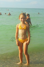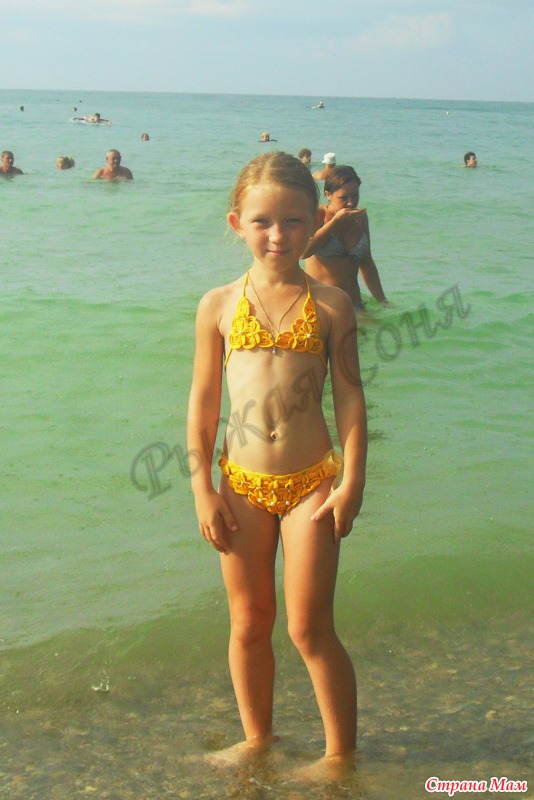 В этом году мои дети впервые ездили отдыхать на море. Для старшенькой связался вот такой купальничек по мотивам работ Судариковой Ники. Соня в нем не купалась, а только красиво выгуливалась по пляжу. Почему-то боялась, что он уплывёт