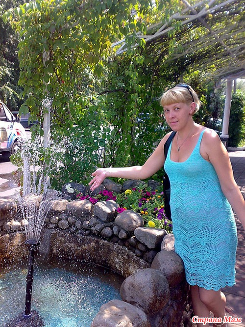 Этот сарафан я вязала специально на растущий животик, благо рисунок позволял.