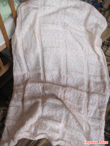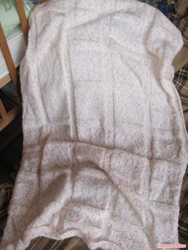 Нитки покупала специальные детские, только не помню как называются (вроде "Кроха") А размер пледа 80х110, кстати он меня сейчас так выручает, мы вернулись из роддома и я дочку им постоянно укрываю. Тепло и уютно