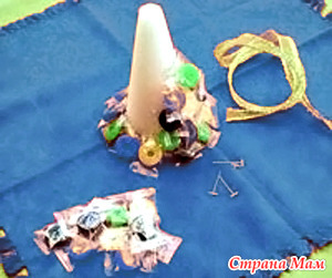 Так как в поделке используются булавки, не давайте маленьким детям разбирать конфетное дерево без вашего присмотра.