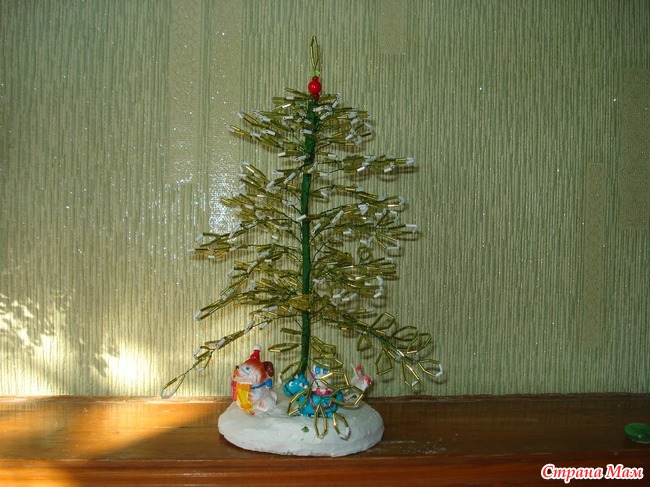 Вот такая елочка из остатков стекляруса, как говориться из того что было, по этому и редковатая!!!