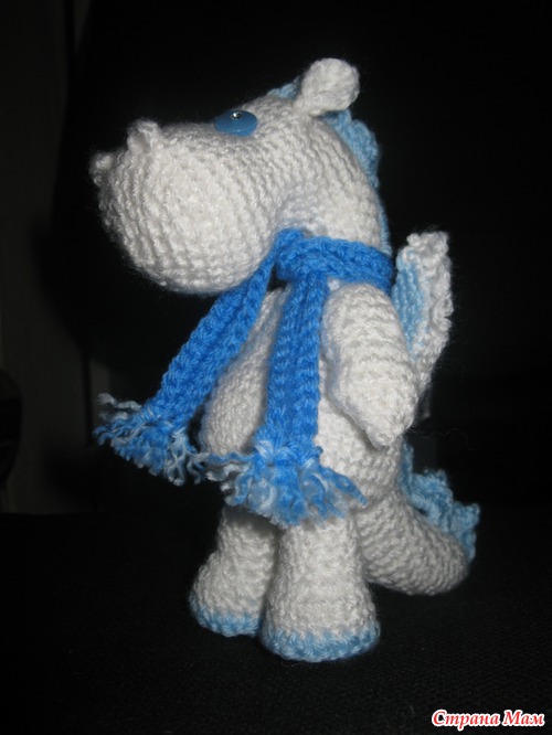 Познакомьтесь – это дракончик Снежок. Часть Снежка (голователо) выполнена по авторскому описанию дракончика Мэджик, остальное - моя вольная фантазия на тему драконов.