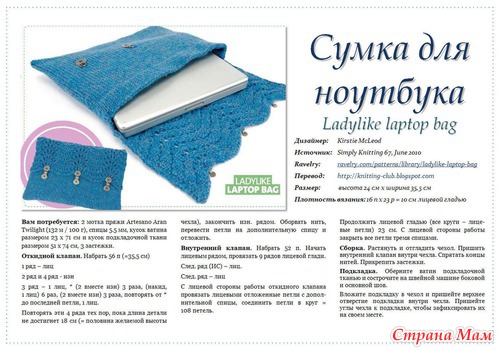 очень нравятся сумки для ноутбуков, такие красивые стильные и неповторимые......но не в обиду никому сказано знакомый мастер который чинит ноуты говорит что очень часто!!! приносят на ремонт ноутбуки которые находятся в вязанных чехлах!! ворсинки попадают туда куда не надо бы и ноуты ломаются......... извините никого не хотела обидеть......я так думаю что чехлы можно вязать все же но из ниточек которые не имеют ворсистости...ну может я не права?? не кидайтесь в меня если что тапками....