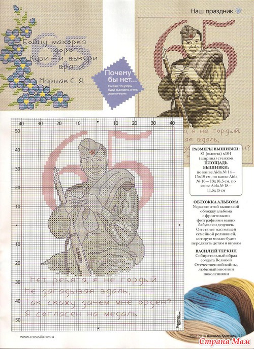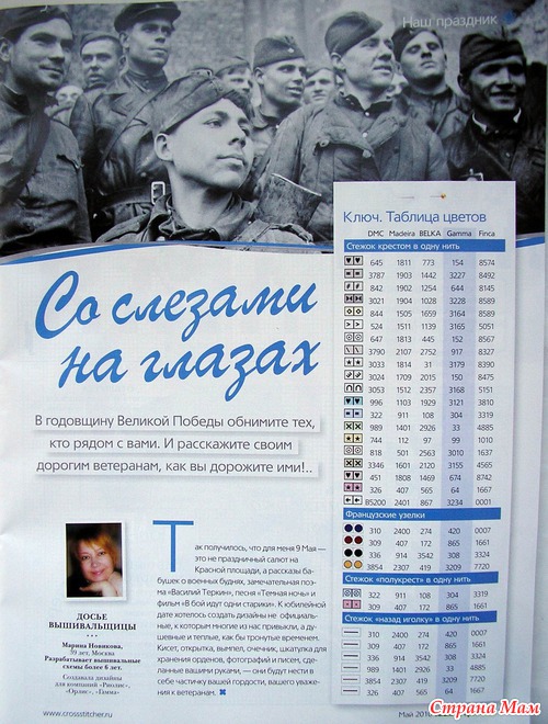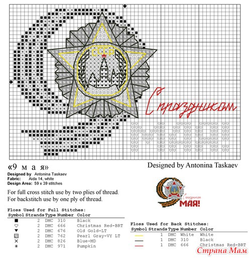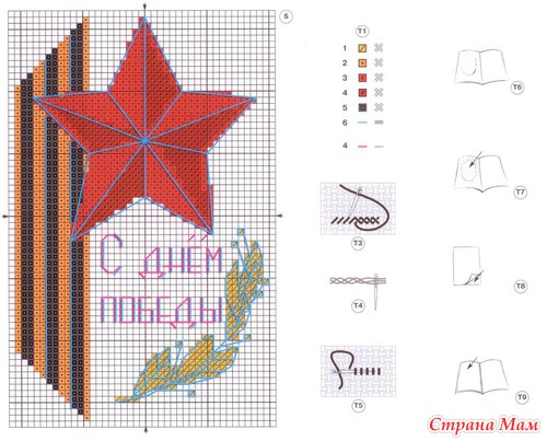 9 МАЯ 2010 года - 65 лет Великой Победы нашего Советского народа в Великой Отечественной войне. На одном из вышивальном сайте проводиться Коллективная акция "Вышивка к Юбилею Великой Победы - 9 Мая" Суть акции состоит в том, что каждый участник акции вышивает один или несколько открыток на тему 9 МАЯ. Потом дарит их любому ветерану, на свое усмотрение. Всем кому близка эта дата, присоединяйтесь. Думаю эта вышивка не займет много времени, ведь впереди еще целая неделя. Пусть больше ветеранов получат хоть и маленькие, но сделанные с душой, подарки. Вот один из вариантов готовой открытки.