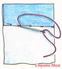 Возьмите кусочек светлой ткани размером 20x20 см, тонкую короткую иголку № 2 и черные нитки (чтобы на образце сразу были видны все погрешности). Подверните одну из сторон на 4 см и прометайте, отступив от края 5 мм (ни в коем случае не утюжьте подгиб — он должен быть воздушным). Теперь сделайте на нитке маленький узелок, введите иглу внутрь подгиба, выведите в сгиб и вколите иголку точно под ниткой, торчащей из сгиба, захватив всего одну-две нити ткани (следите, чтобы иголка не проткнула ткань насквозь). Вытяните нитку. Опять введите иголку в сгиб, вколов ее рядом с предыдущим проколом, и сделайте стежок внутри сгиба (7—8 мм), затем выведите иголку из сгиба, вытяните нитку до конца и точно под ее выходом прошейте ткань, захватив одну-две нити. Продолжайте шить, проверяя время от времени, не видна ли черная нитка с лицевой стороны образца.