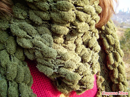 Решила я сделать бактус к зиме... В нашем городе почти невозможно найти помпоннуй пряжу. Случайно в одном магазине нашла. Сразу взяла 2 мотка. Создала убожество маленькое и стянутое... (верхний край - 1 метр) Поняла, что сделала фигню!