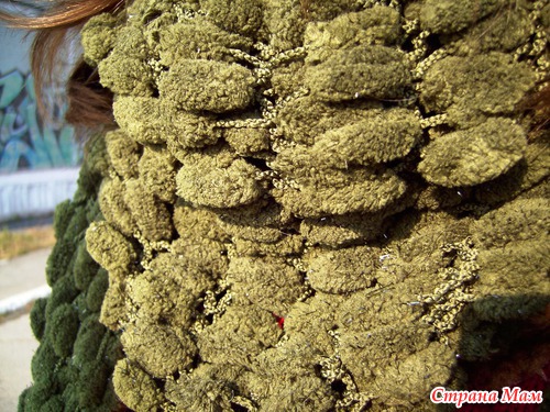 И вот что в итоге у меня вышло!Пряжа YarnArt Mulberry (ЯрнАрт Малбери) 50 гр/30 м (100% микро полиэстер) болотно-зеленого цвета с блестками.