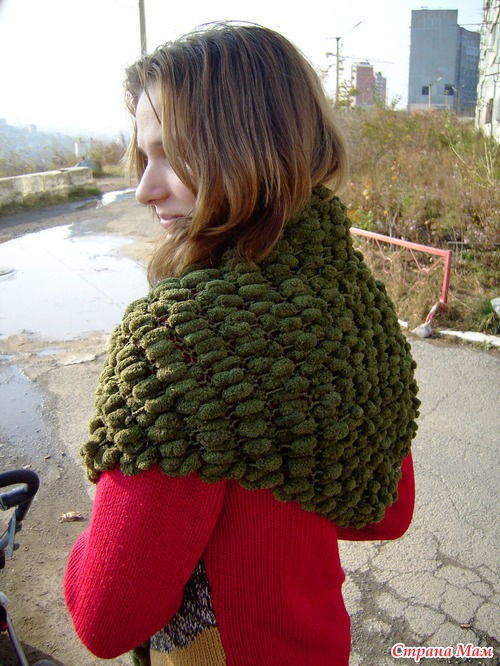 Решила я сделать бактус к зиме... В нашем городе почти невозможно найти помпоннуй пряжу. Случайно в одном магазине нашла. Сразу взяла 2 мотка. Создала убожество маленькое и стянутое... (верхний край - 1 метр) Поняла, что сделала фигню!