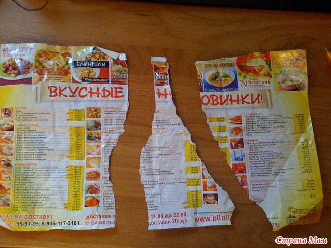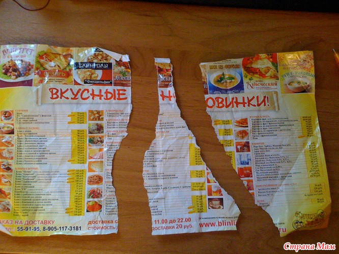 Сижу в СМ, сынулька на коленках, на столе лежит листовка рекламная. Лежала она так не долго! Масюлька побыстренькому ее прихвватил и ОДНИМ движением руки разорвал ее на три части, вырвав серединку.