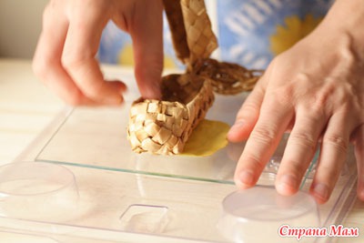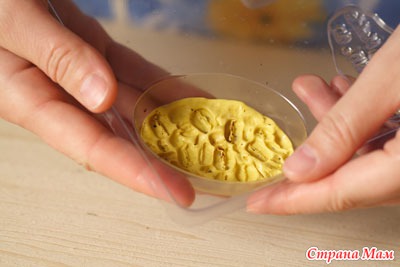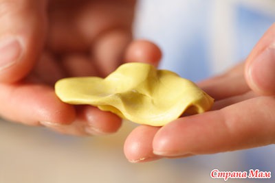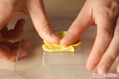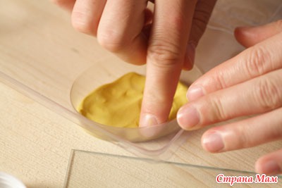 Распределяем пластилин по поверхности, аналогичной дну формы.