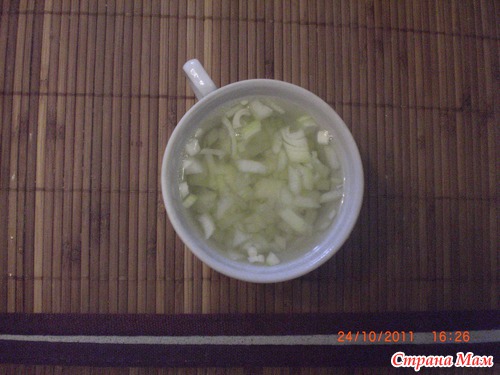и заливаем водой с уксусом (1ч. л. уксуса на чайную кружку воды), отставляем минут на 15.