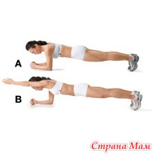 Во время следующего упражнения придется представить, что вы... доска! Держите тело на весу, опираясь на предплечья (руки согнуты в локтях) и пальцы ног (см. фото А).