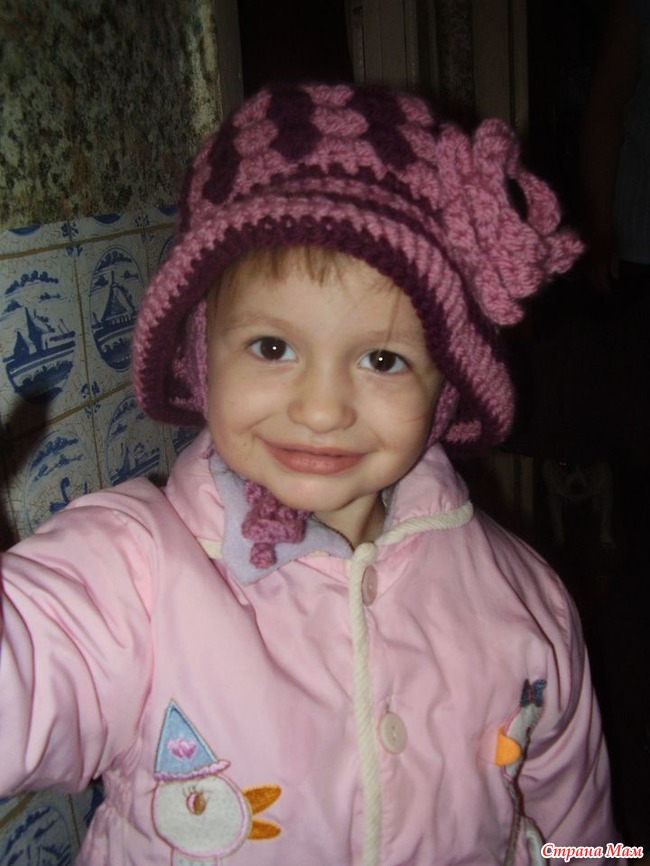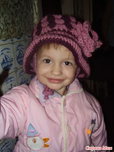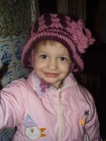 Довязала Дианке шапку. Сейчас вяжу шарфик. Хотела комплект сфоткать, но не удержалась. Что-то мне так понравилось, как Дианка в новой шапочке смотрится, что захотелось преждевременно похвастаться!