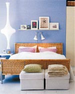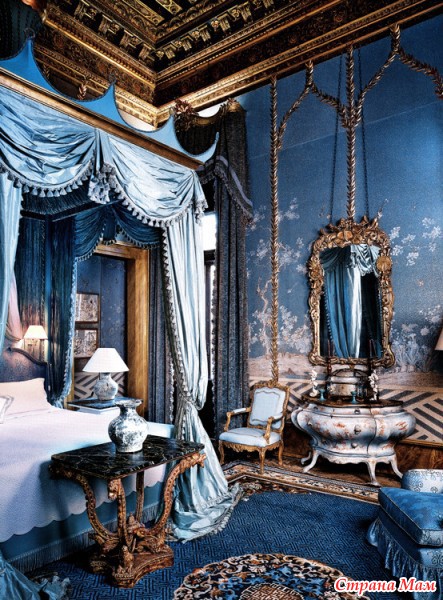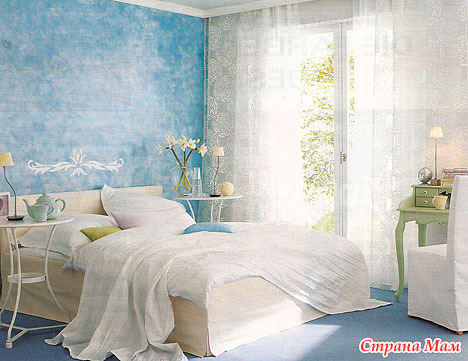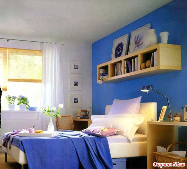 Благодаря своему успокаивающему воздействию синий цвет часто встречается в оформлении спален - самой тихой части дома. Ведь образы, которые несет в себе синий цвет - глубокая ночь, тишина, темнота, сказка...