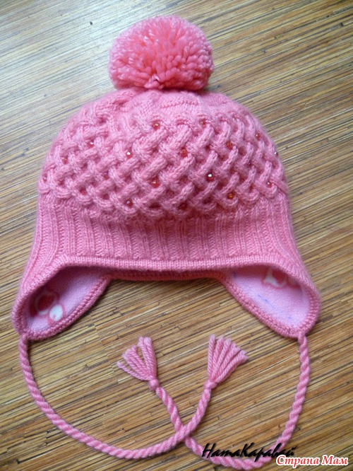 Здравствуйте. Наша шапка "Жемчужная зима". Из всех вариантов, которые предлагала дочке, она согласилась только на эту шапку. Сказала, мама вяжи мне эту красивую шапку. Подклад флисовый, который шила в первый раз. Нитки-Пехорка Мериносовая.