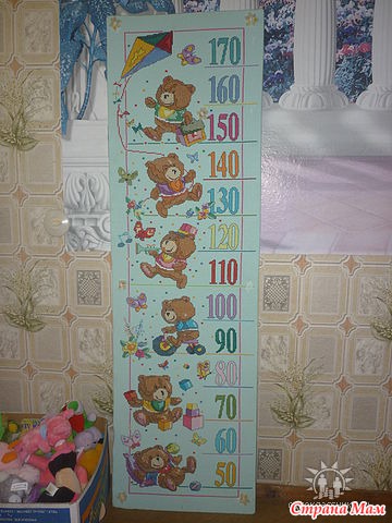 Я вот тоже хочу вышить ростомер. Но не знаю как вымерить чтоб расстояние между цифрами на вышивке соответствовало сантиметрам. Как вы рассчитали, не подскажете? И на что вы крепили вышитый ростомер чтоб повесить на стенку?