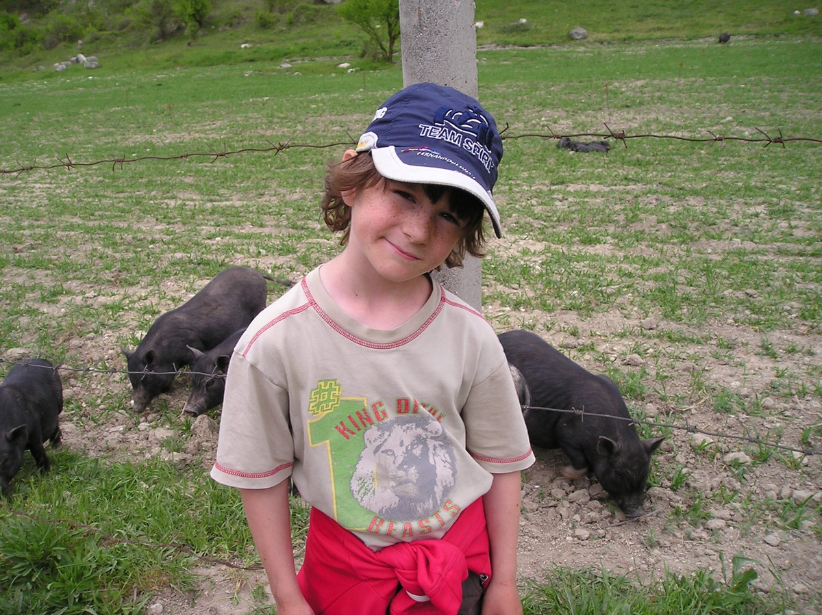 Чуть дальше находился большой загон с милыми черными хрюшками. Парасята оказались очень общительными, без страха подходили к нам и ели из рук печенье.
