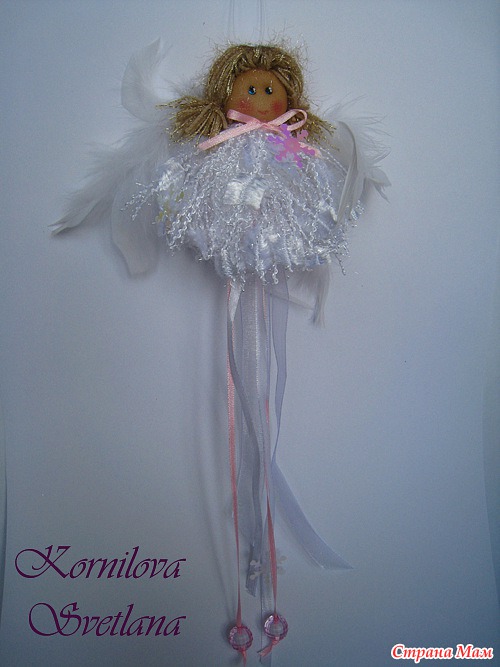 А иногда из головки-мешочка (тогда одёжка пустая без тельца пришита к голове-мешочку). В этом случае ножки-верёвочки выходят из головы и болтаются внутри платьица.