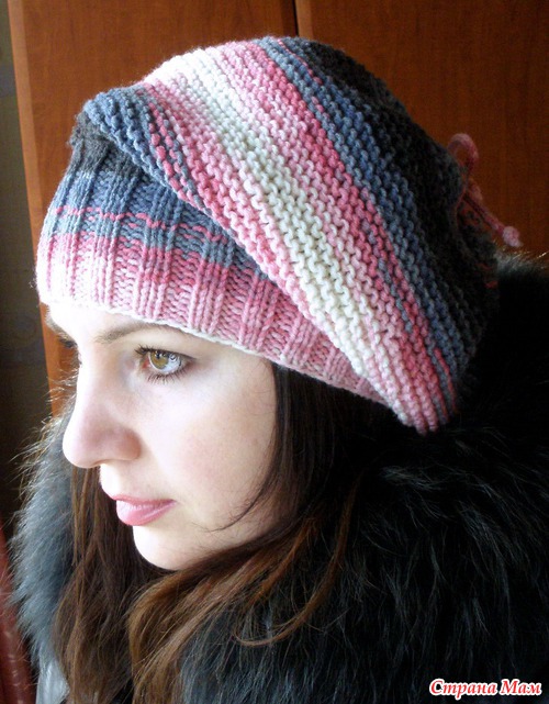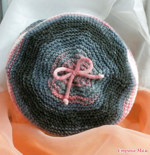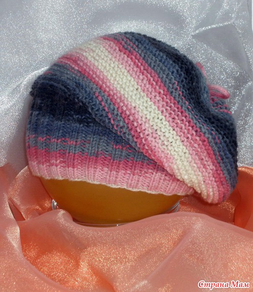 спасибки!!! первоначально из этого мотка ниток была связана шапка "пион", потом распущена и связана шляпка с полями, снова распущена и вот теперь берет такие метаморфозы!